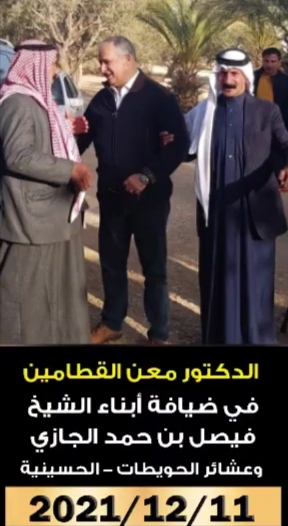 الدكتور معن القطامين في ضيافة أبناء الشيخ فيصل بن حمد الجازي وعشائر الحويطات"فيديو"