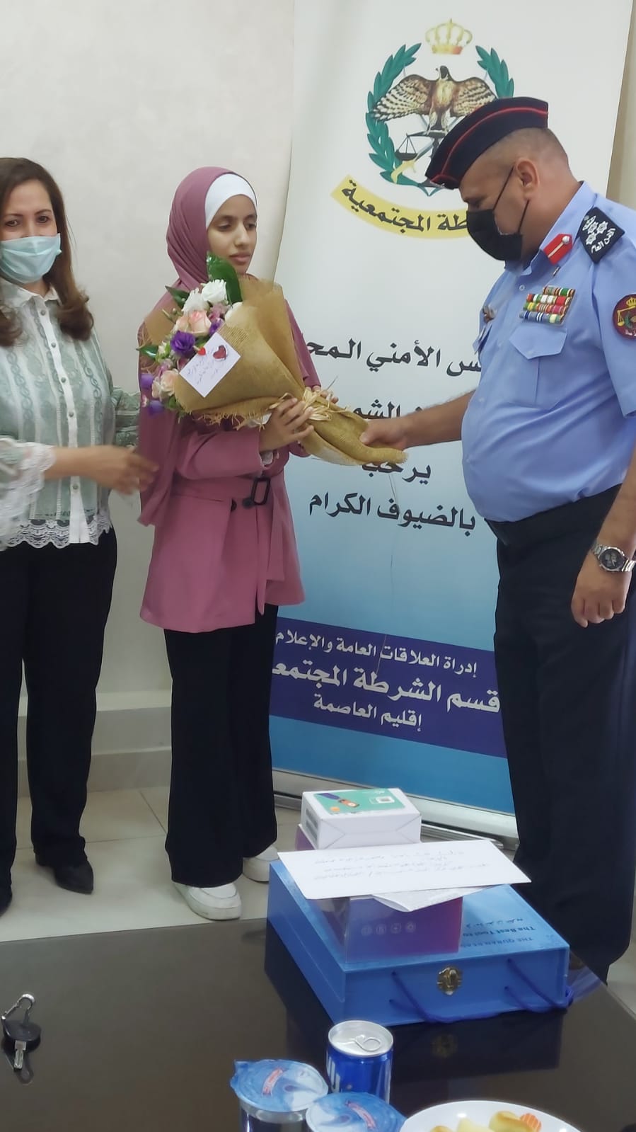 الشرطة المجتمعية في إقليم العاصمة تكرّم الطالبة الكفيفة المتفوقة مايا الجدعان ... فيديو وصور