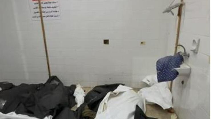تكدس جثامين الشهداء في المستشفى إثر مجزرة النصيرات