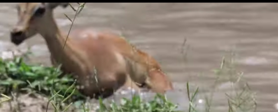 "شاهد"غزالة تنجو من فكي تمساح لتسقط فريسة لفهد... فيديو
