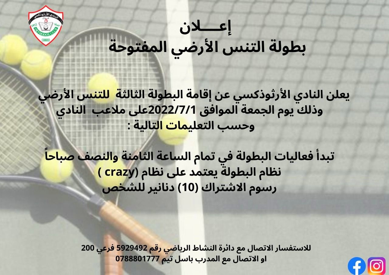 بطولة الارثوذكسي المفتوحه للتنس الارضي تنطلق الجمعة