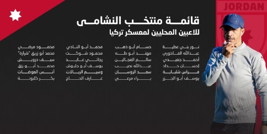 منتخب النشامى يعلن قائمة اللاعبين المحليين لمعسكر تركيا