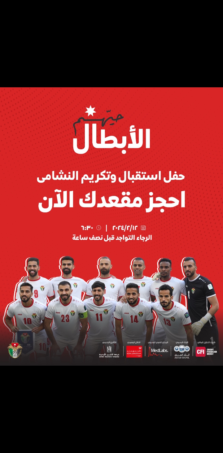 دعوة للجماهير الأردنية للمشاركة باستقبال المنتخب الوطني