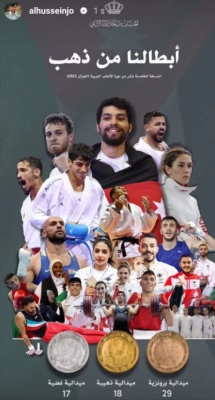 ولي العهد يهنئ أبطال الأردن بالألعاب العربية"أبطالنا من ذهب "